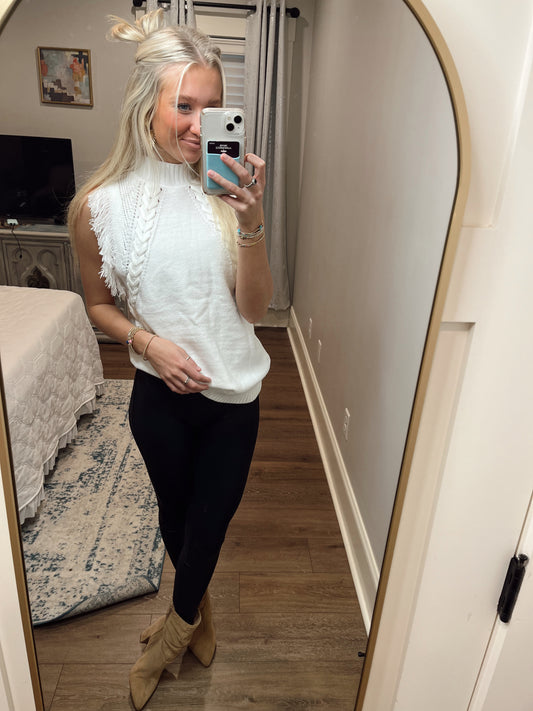 Amelia Fringe Mock Neck Sweater