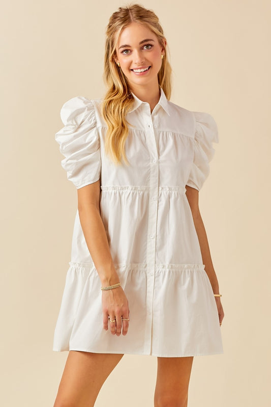 POPLIN BUTTON DOWN DRESS W.SHOULDER DETAIL