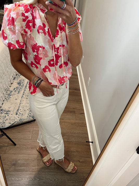 FLORAL EMBROIDERY RUFFLE HEM MINI DRESS