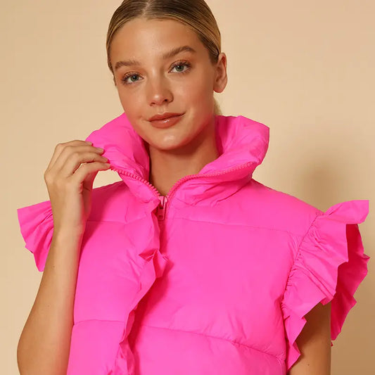 Mia Cropped Ruffle Puffer Vest