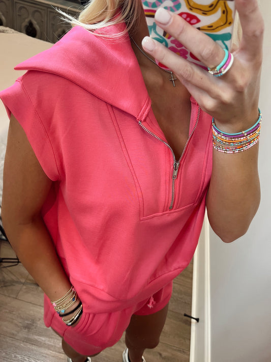 Sofia Sleeveless Hooded Top and Shorts Pink Set