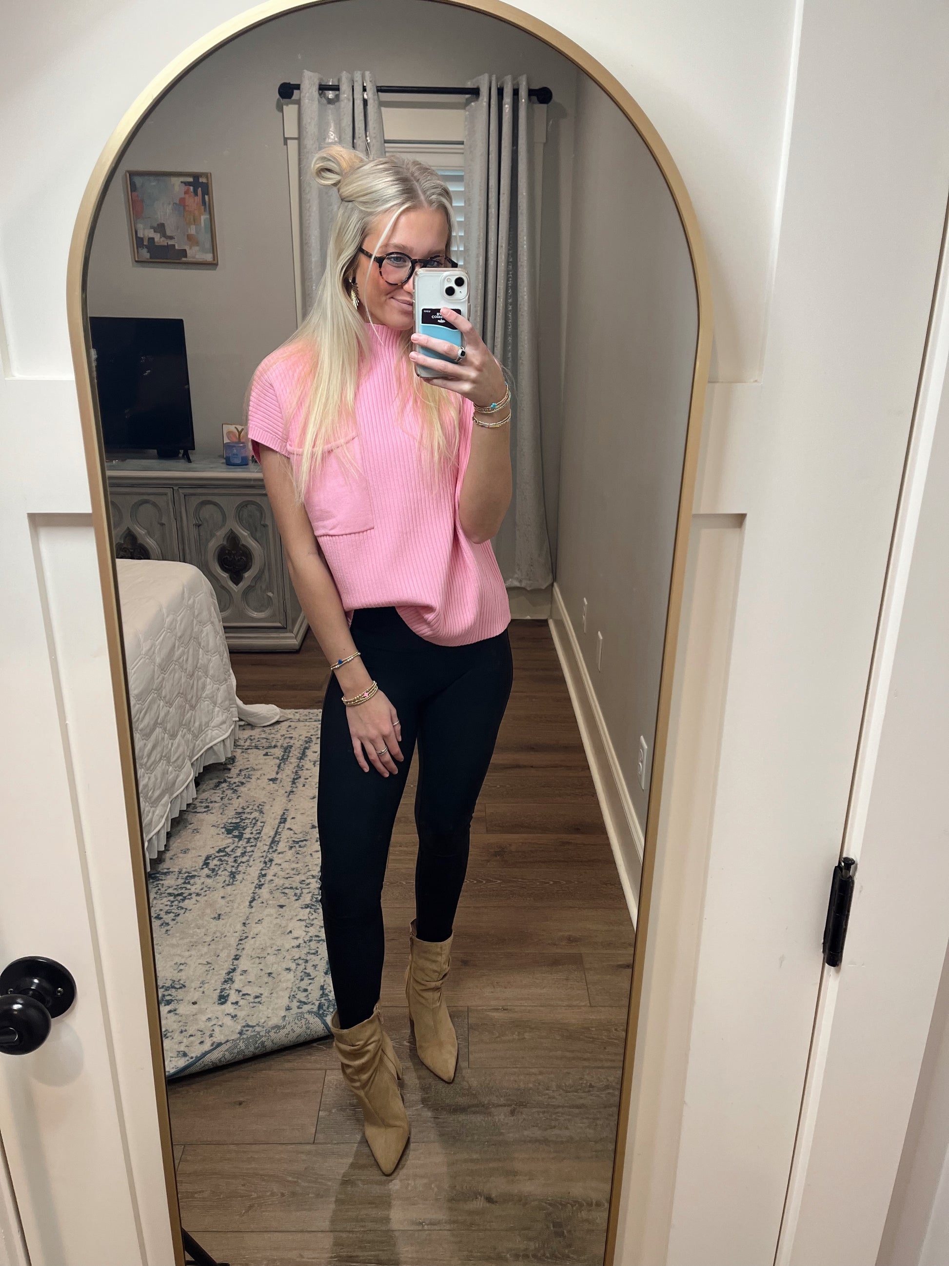 Introducing our charming ribbed short sleeve pink pocketed sweater – the epitome of cozy chic! Wrap yourself in a soft embrace with this delightful knitwear featuring a playful ribbed texture. The sweet pastel pink hue adds a touch of warmth to your wardrobe, while the conveniently placed pockets bring both style and functionality. Perfect for those casual outings or cozy nights in, this sweater effortlessly combines comfort and cuteness. Embrace the joy of fashion and comfort with our ribbed short sleeve pink pocketed sweater – your new go-to for a touch of sweetness in every moment!