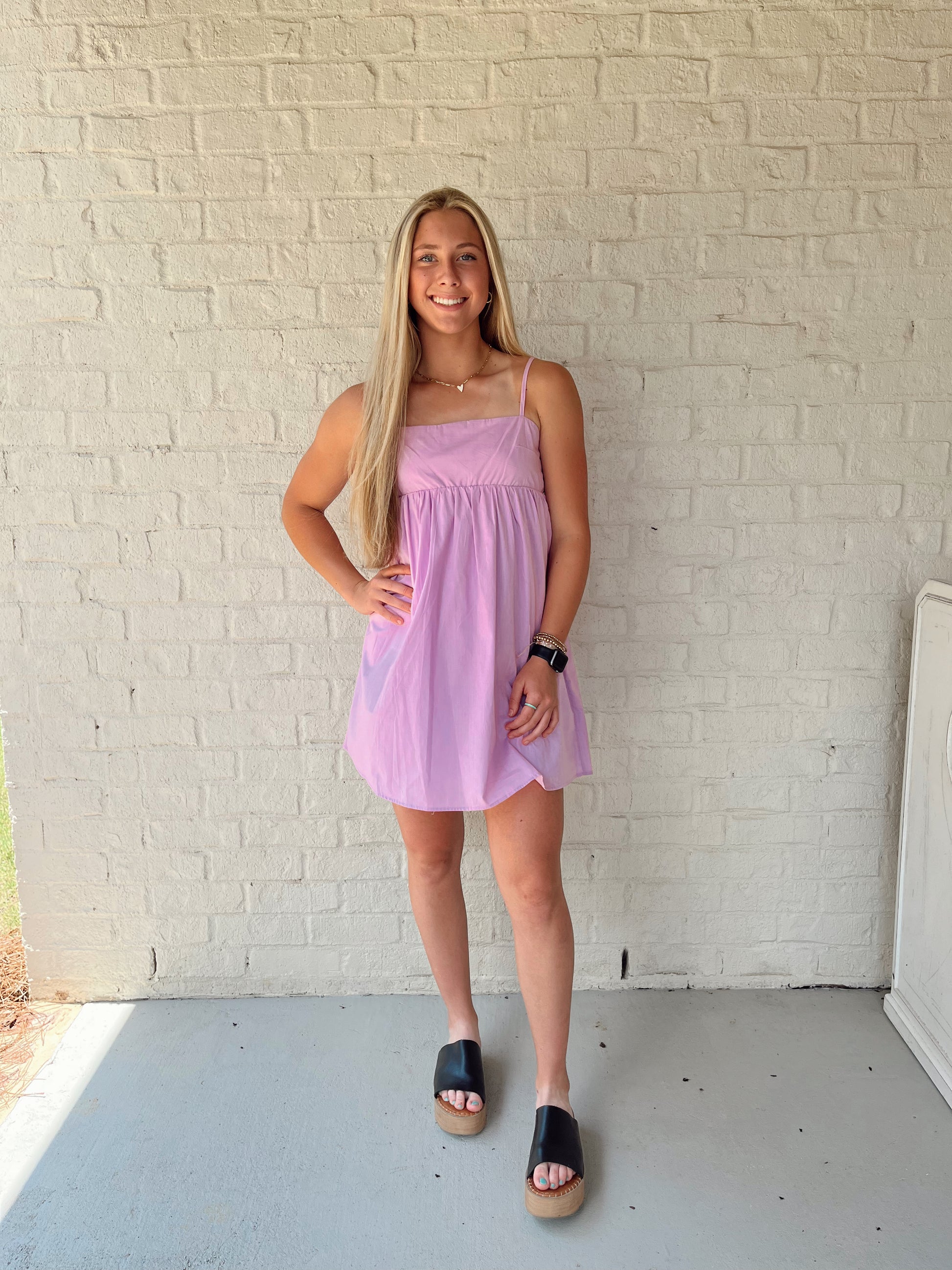 GET READY TO LOOK LIKE A DREAM COME TRUE! THIS PLAYFUL DRESS IS FRAMED WITH A STRAIGHT NECK AND ADJUSTABLE SHOULDER STRAPS, ATTACHED TO A FITTED BODICE. HIGH WAISTLINE CREATES A GATHERED LITTLE SKIRT, WHILE THE CUTOUT AT THE BACK FINISHES OFF THE LOOK.