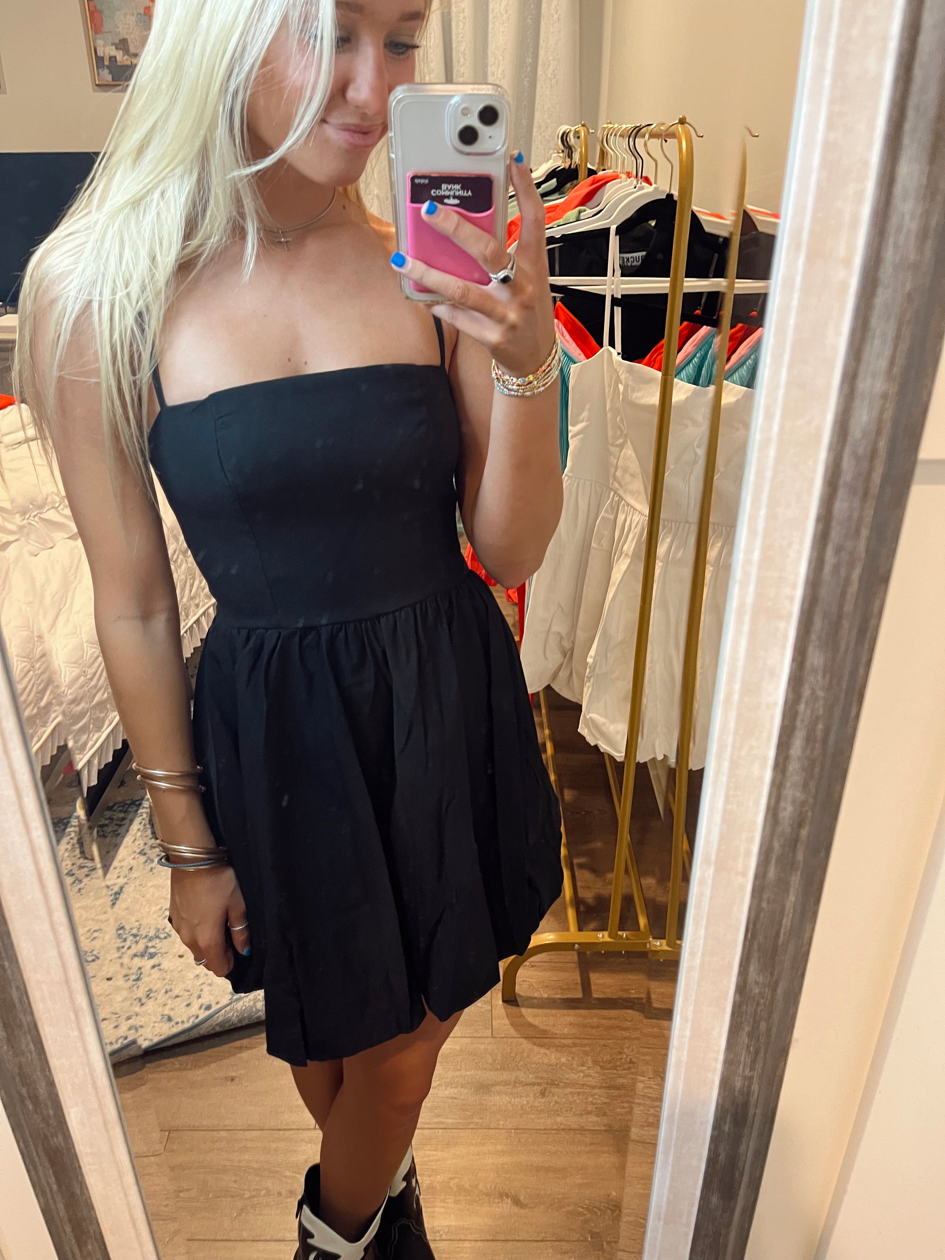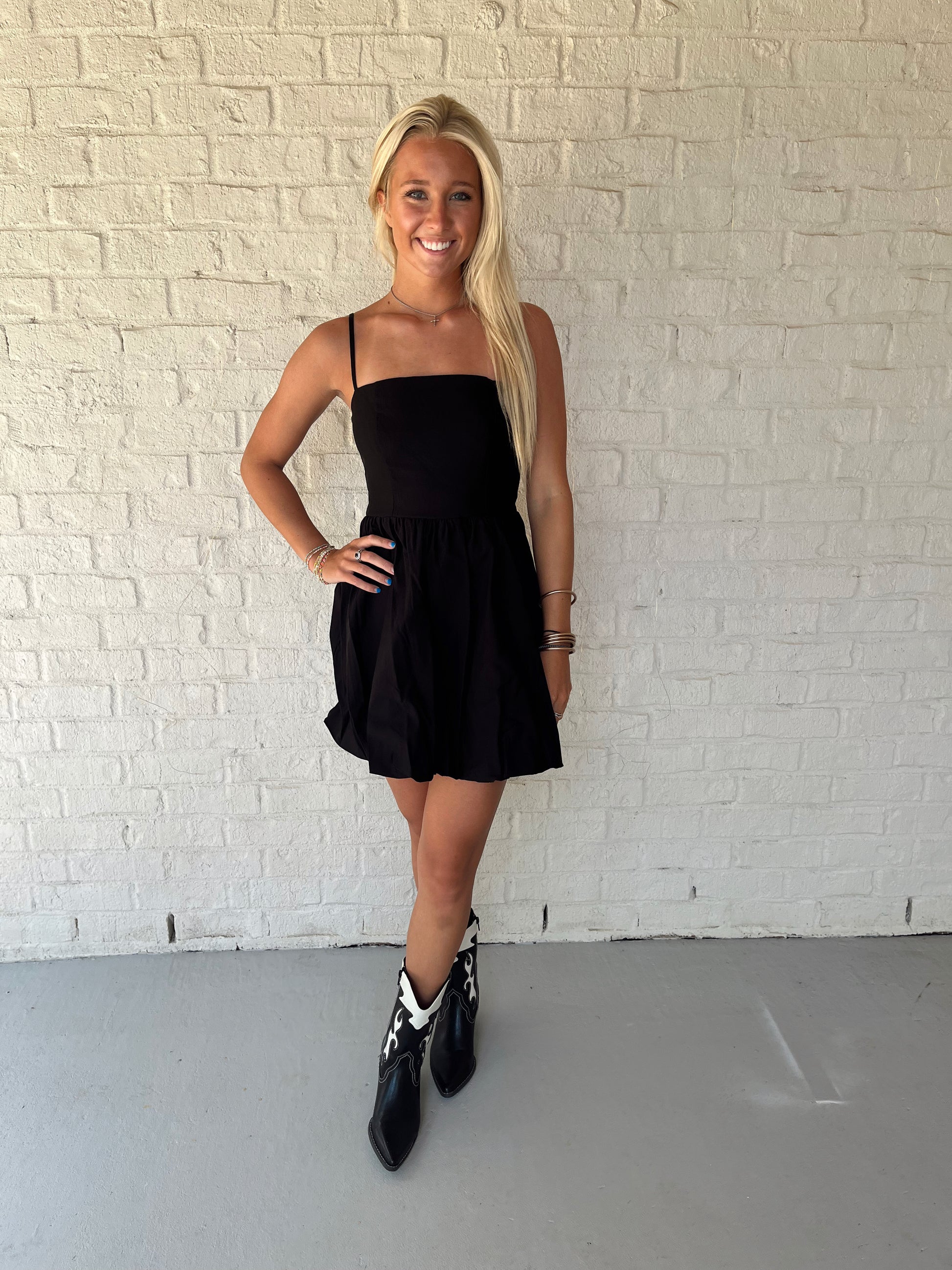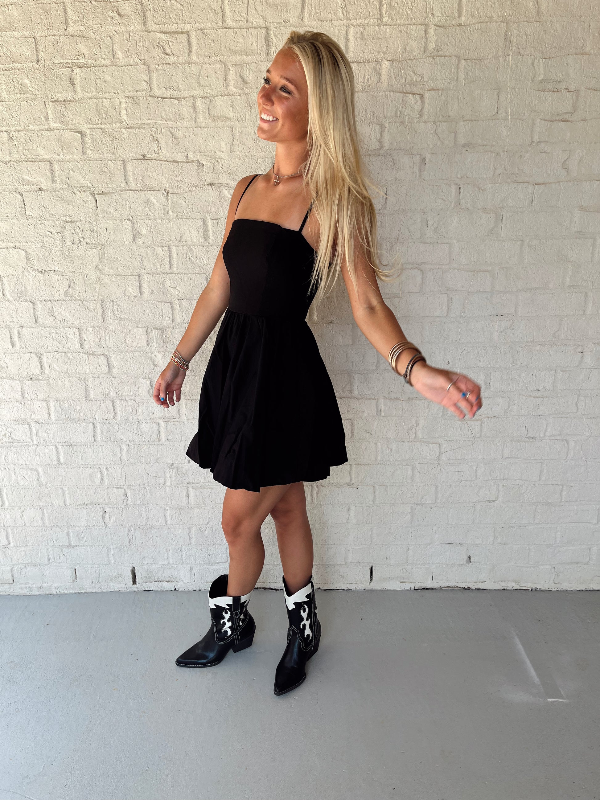 This dress is a must have for black out game days! Stretchy material up top and the bottom is flowy! So cute paired with cowgirl boots or your favorite heels/sandals!! Our Karlee dress is also perfect for rush!