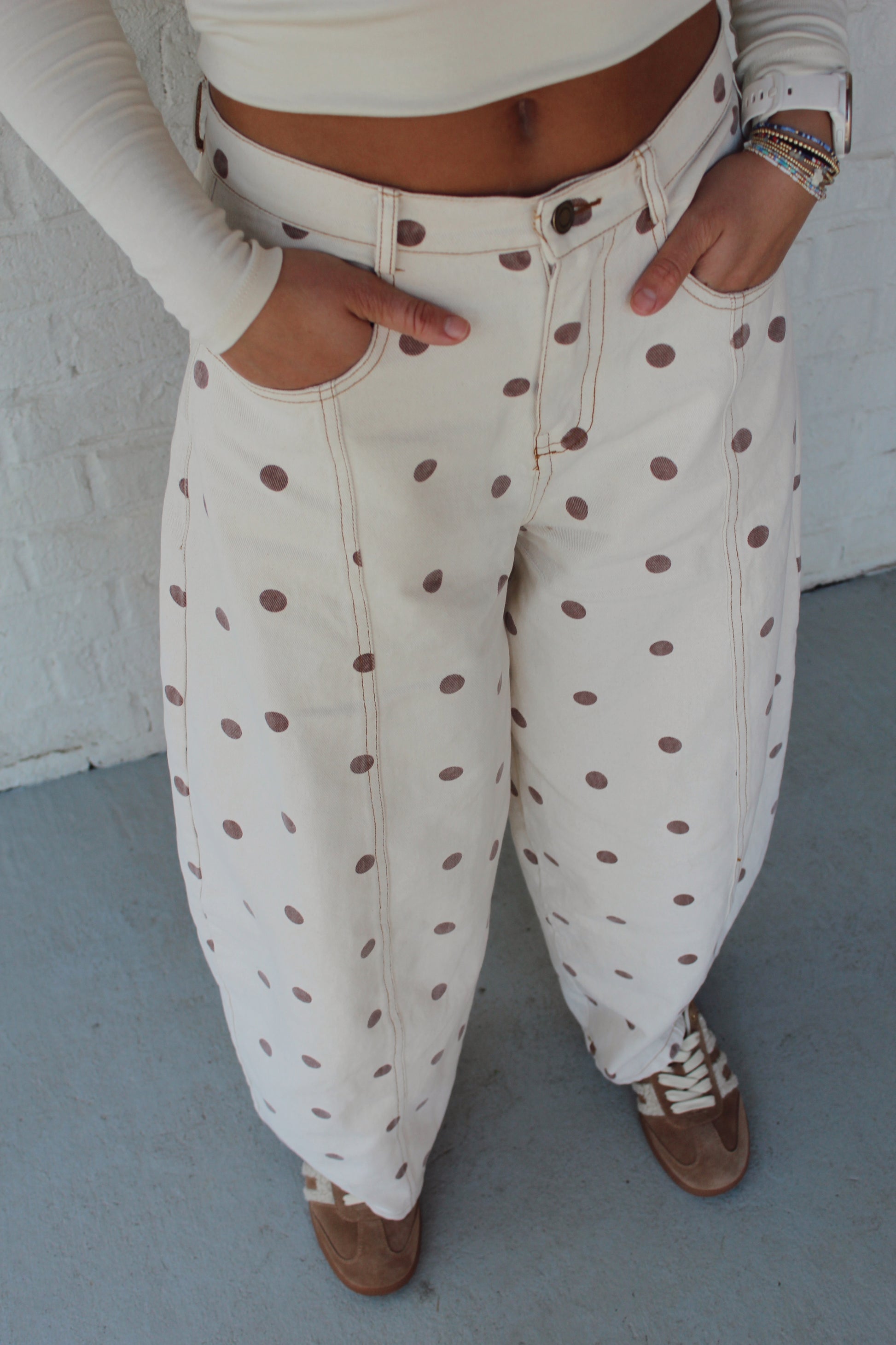 Margo Barrel Jeans - cream/brown