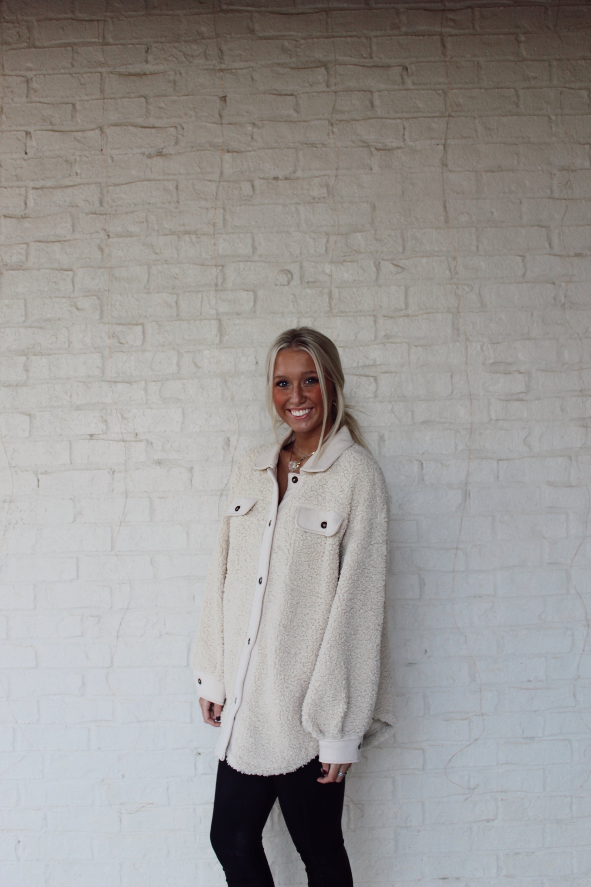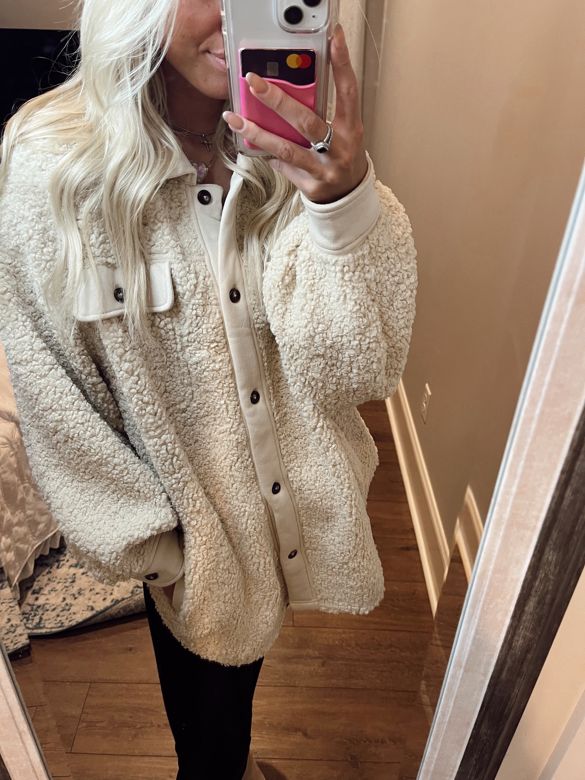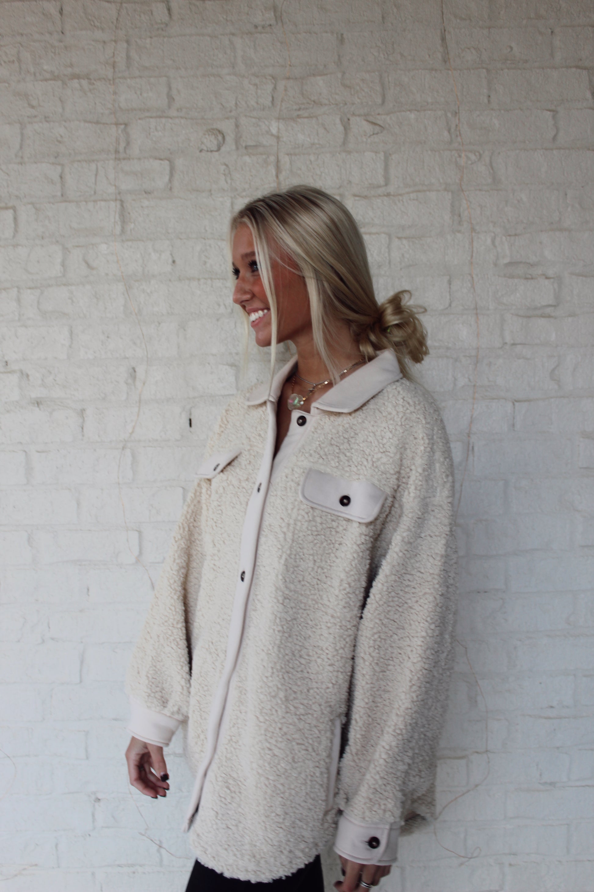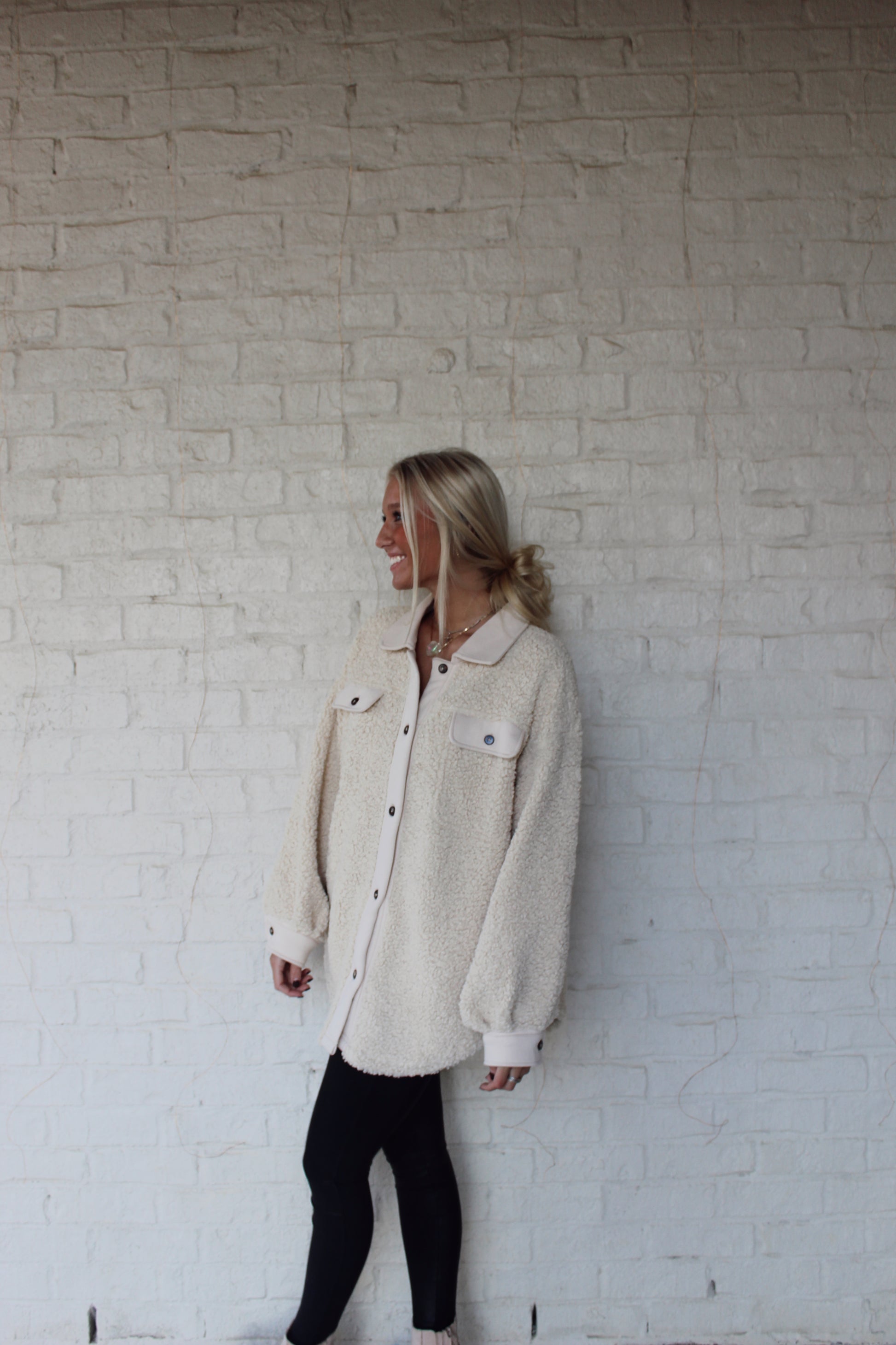 The Fleece Contrast Sherpa Oversized Shacket is the epitome of cozy-chic fashion, blending the best of a shirt and a jacket into a versatile and stylish piece that's perfect for those chilly days.