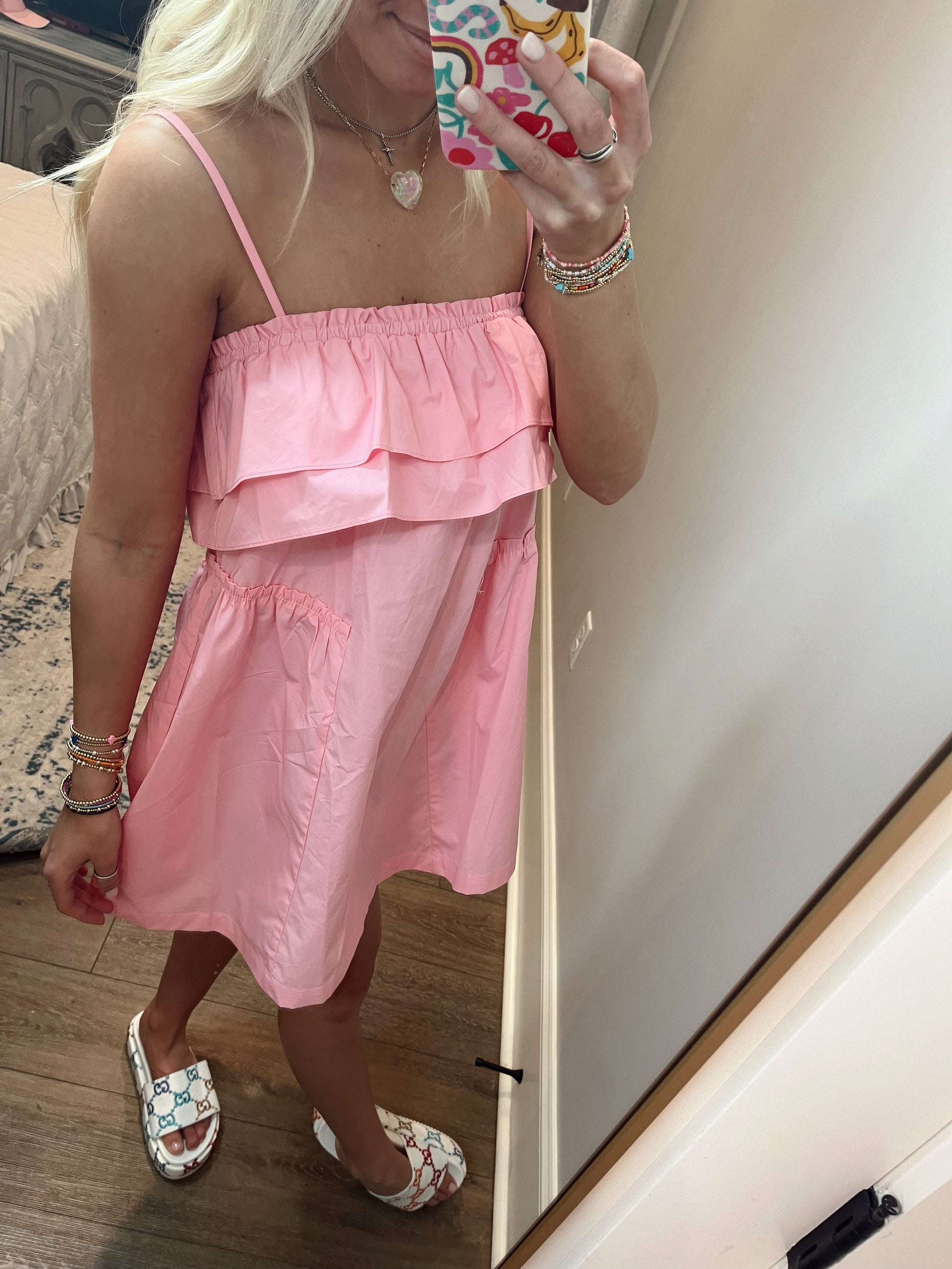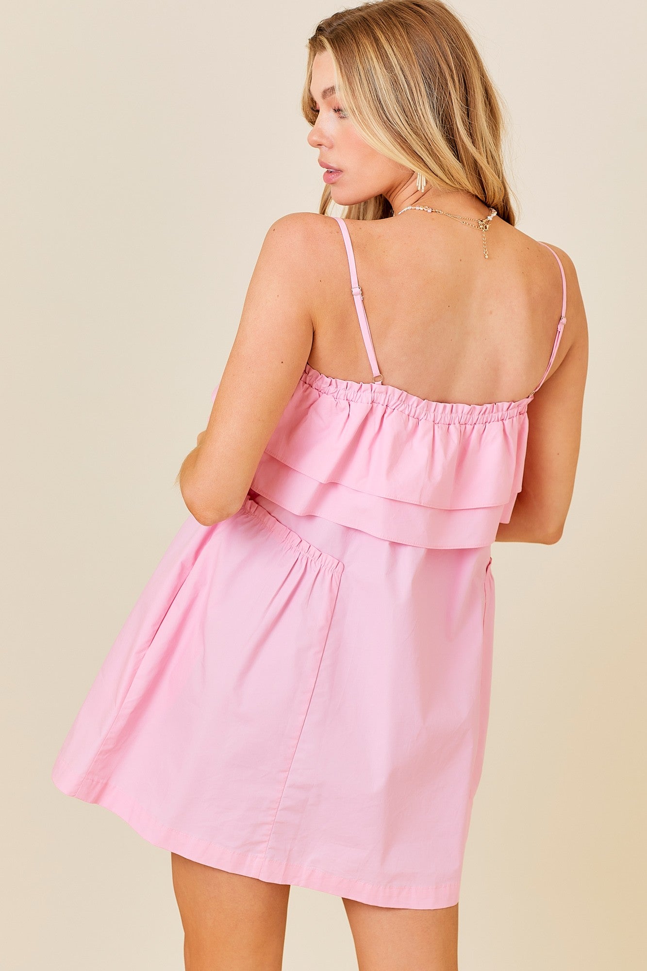 RUFFLE NECKLINE DRESS WITH SIDE SHIRRING DETAILS