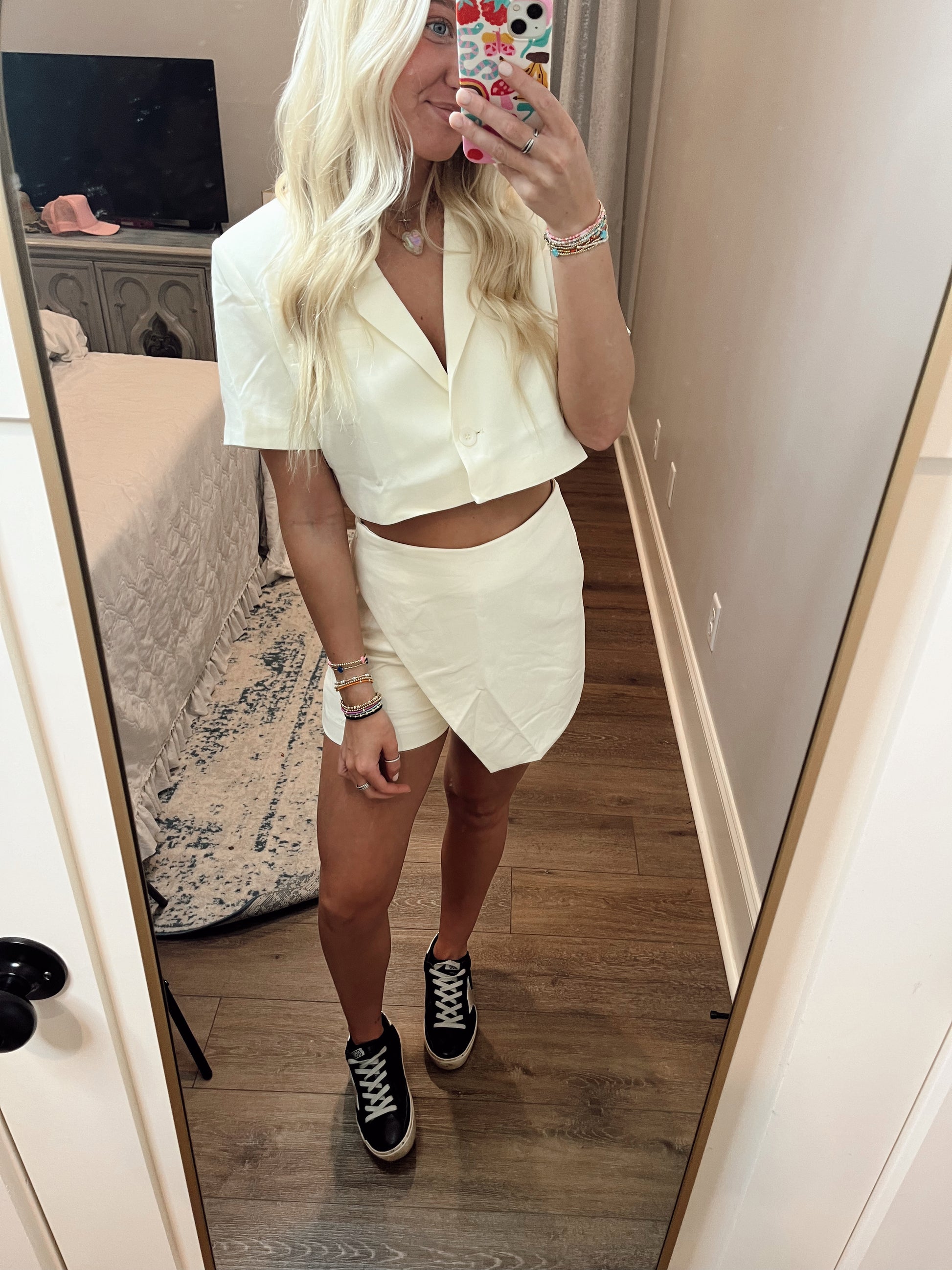 SHORT SLEEVE CROP JACKET AND OVERLAY SKORT SET