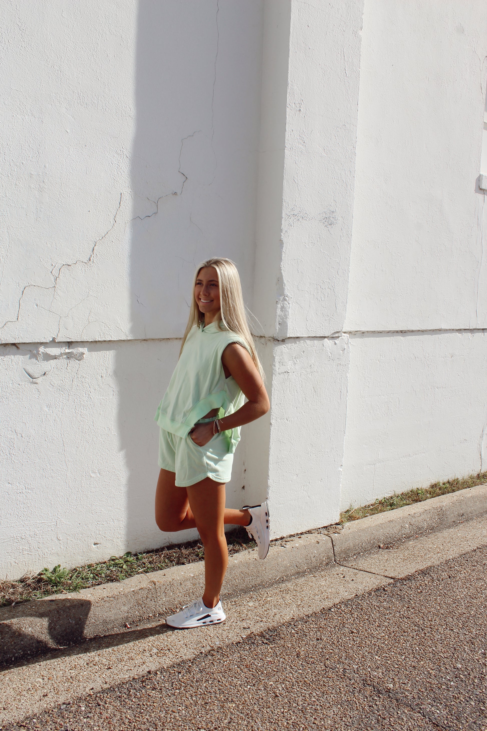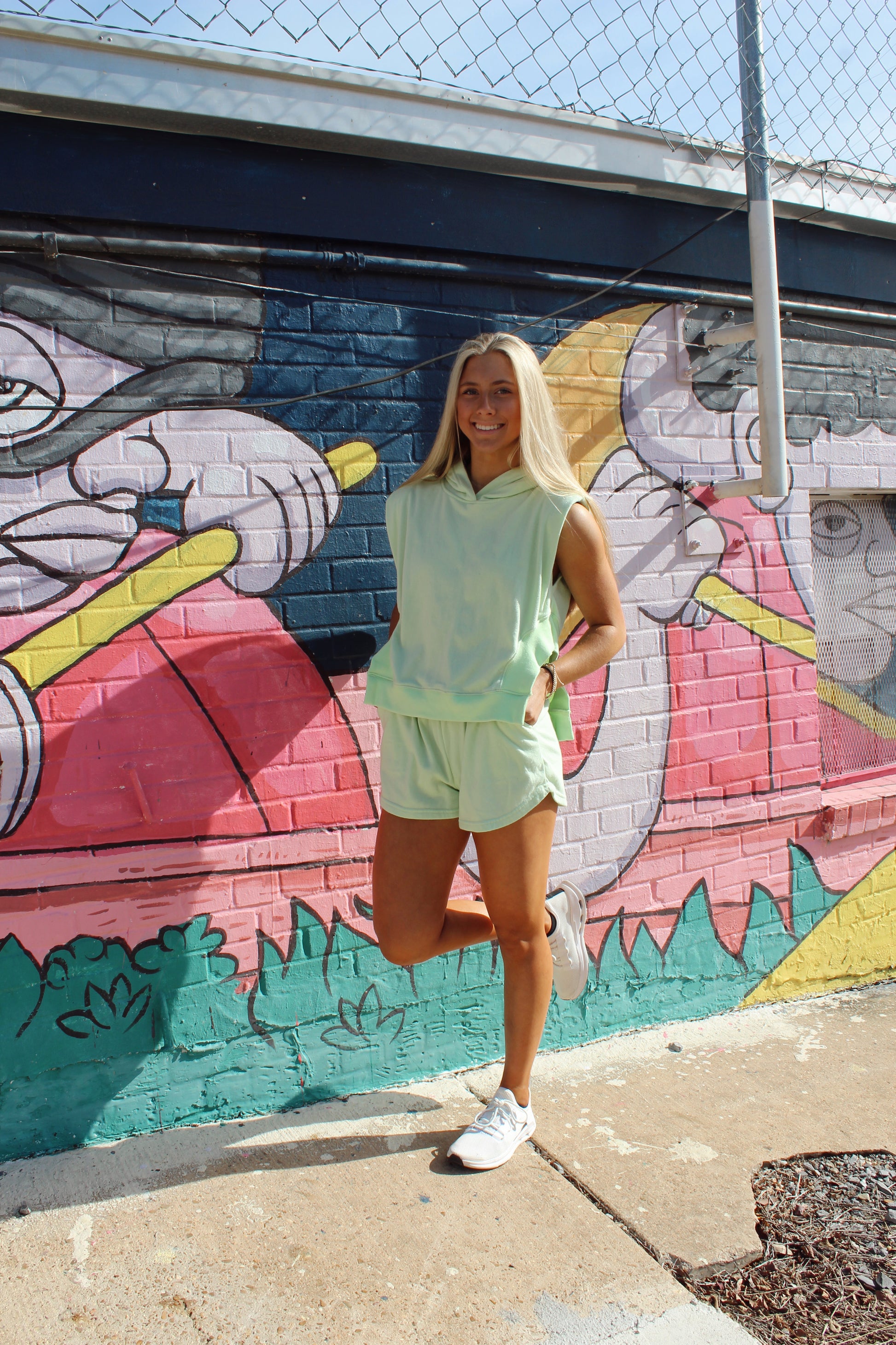 Sofia Sleeveless Hooded Top and Shorts Green Set