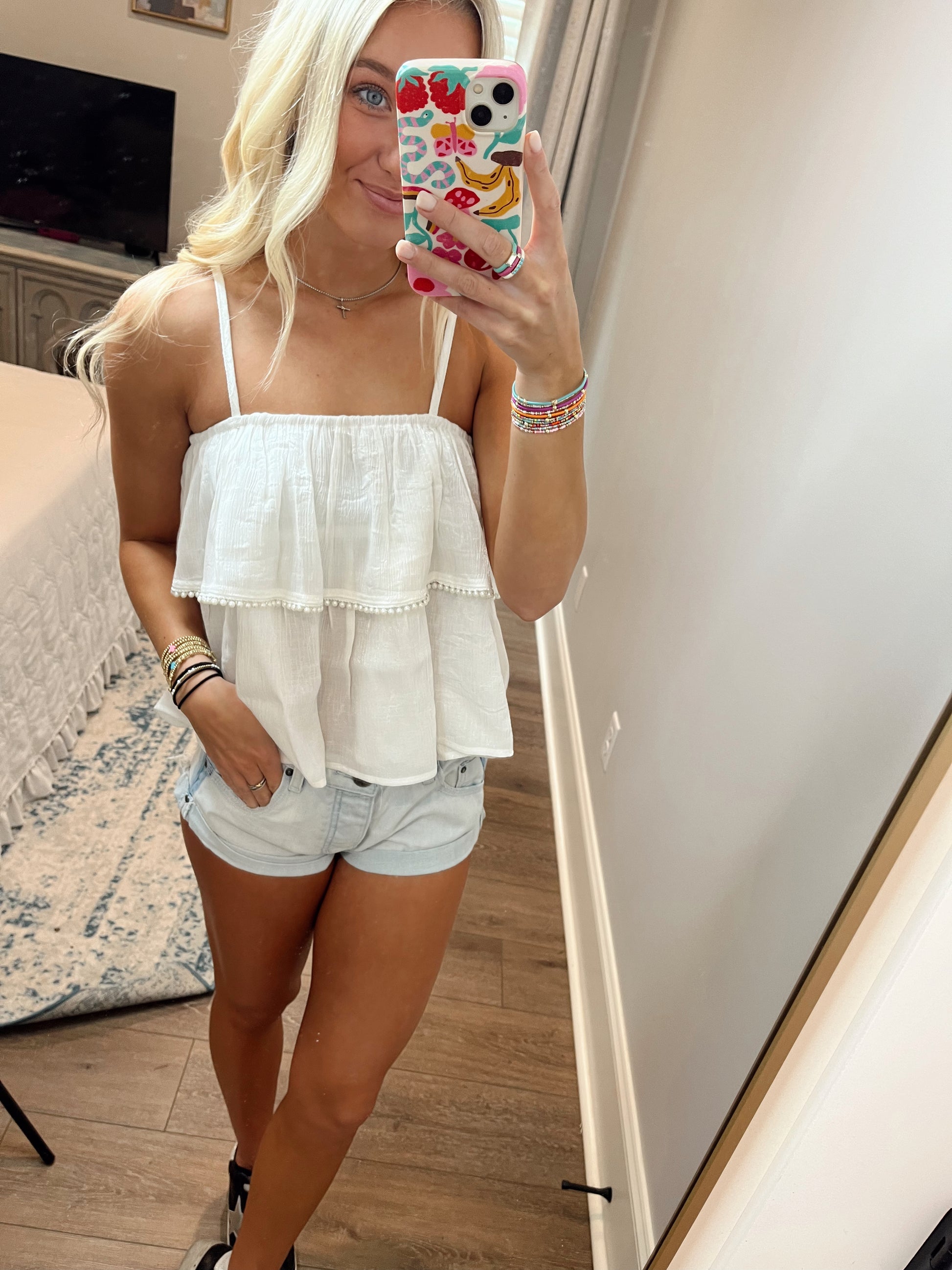 Spaghetti Strap Tiered Ruffled Top