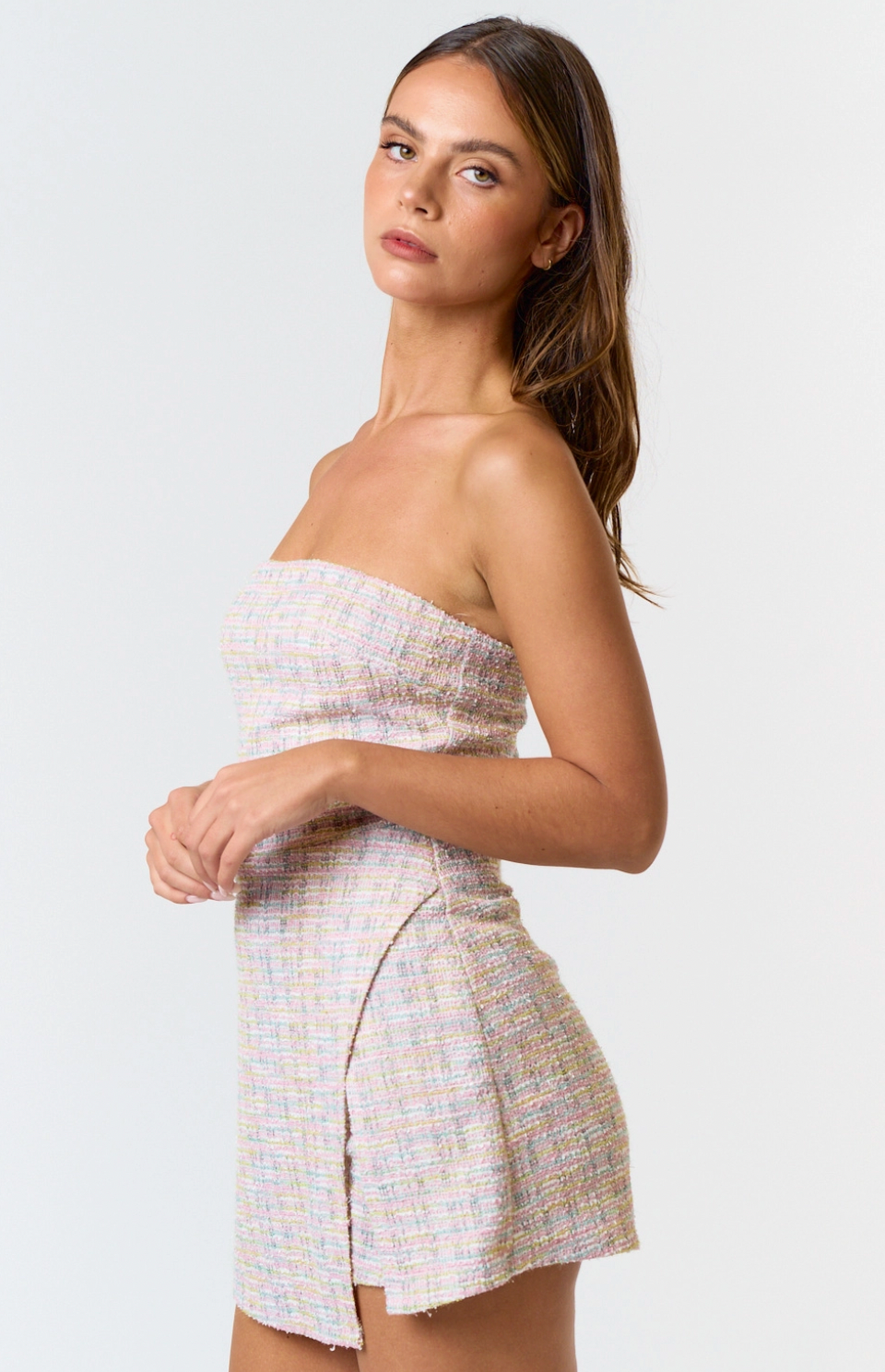 Stretch Boucle Tweed Tube Romper