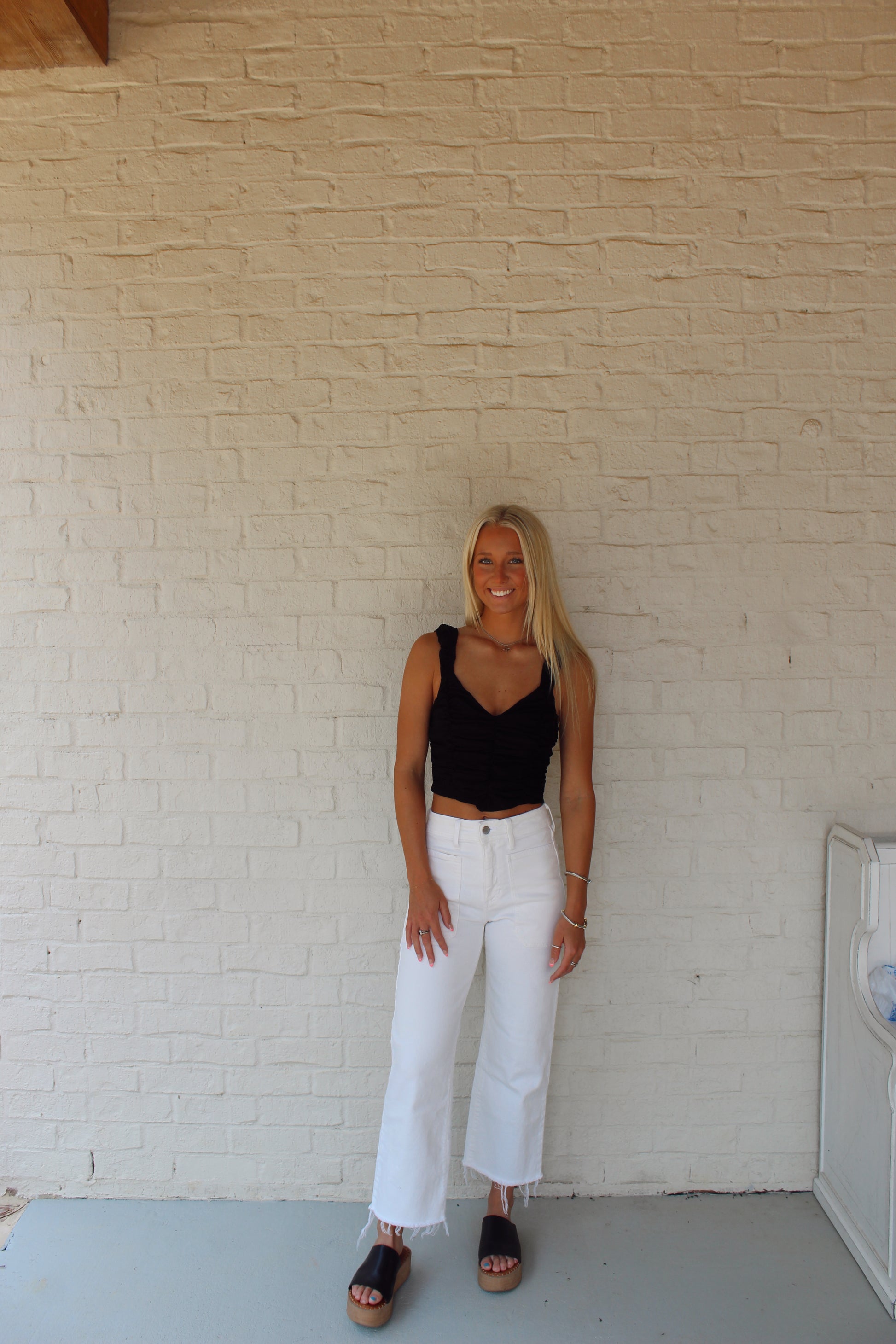 V-NECK SLEEVELESS RUCHING CROP TOP