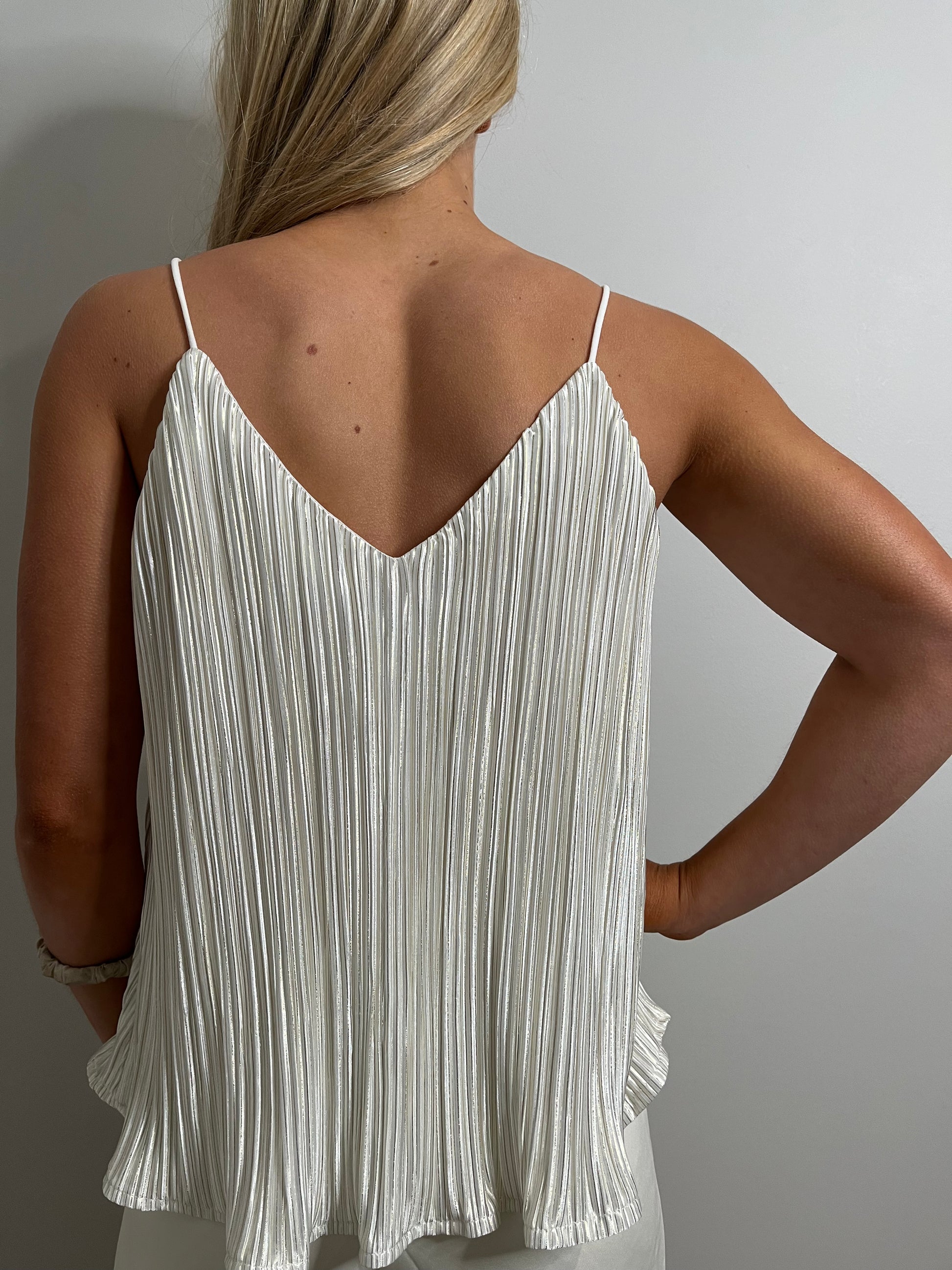 White With Gold Accent Plisse Cami